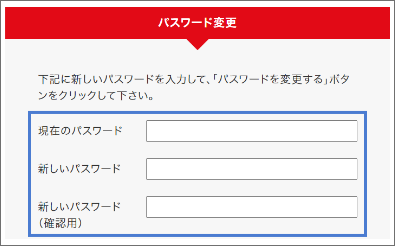 現在のパスワード、新しいパスワード、新しいパスワード(確認用)の情報をご入力ください。