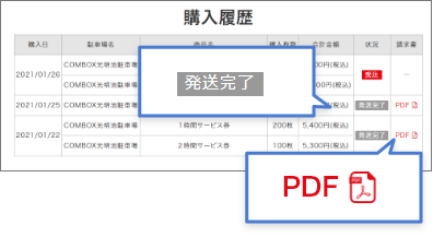 ログイン後の購入画面の下部にある購入履歴で内容をご確認いただけます。