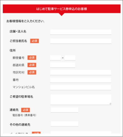 駐車サービス券発注サイトの「お申し込みの手続きへ」をクリックしてください。