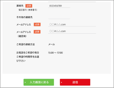 ご入力いただいた情報に間違いないかご確認ください。